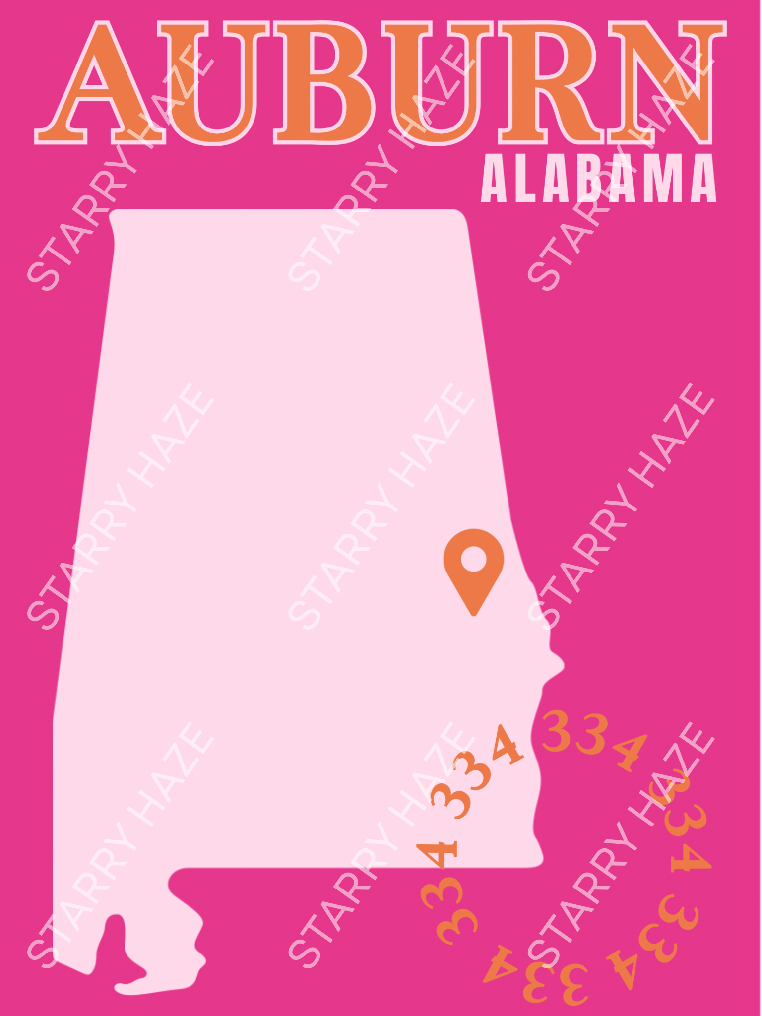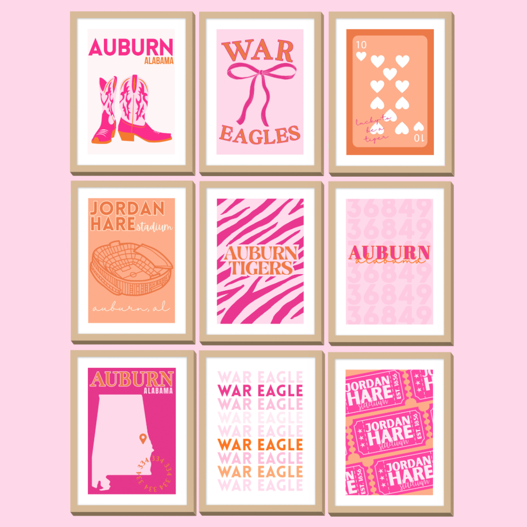 Set of 9 Custom College Digital Wall Prints - Auburn University, Auburn