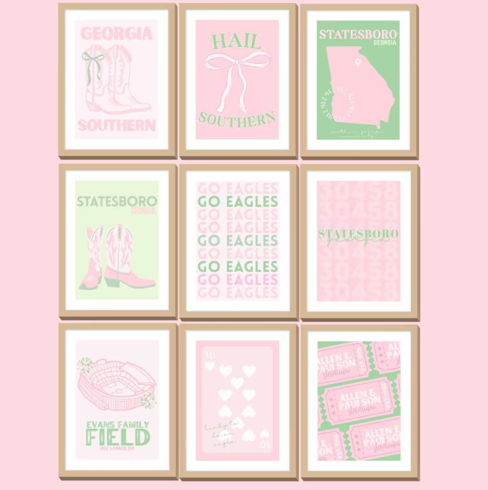 Set of 9 Custom College Digital Wall Prints - Southern Georgia University, Statesboro