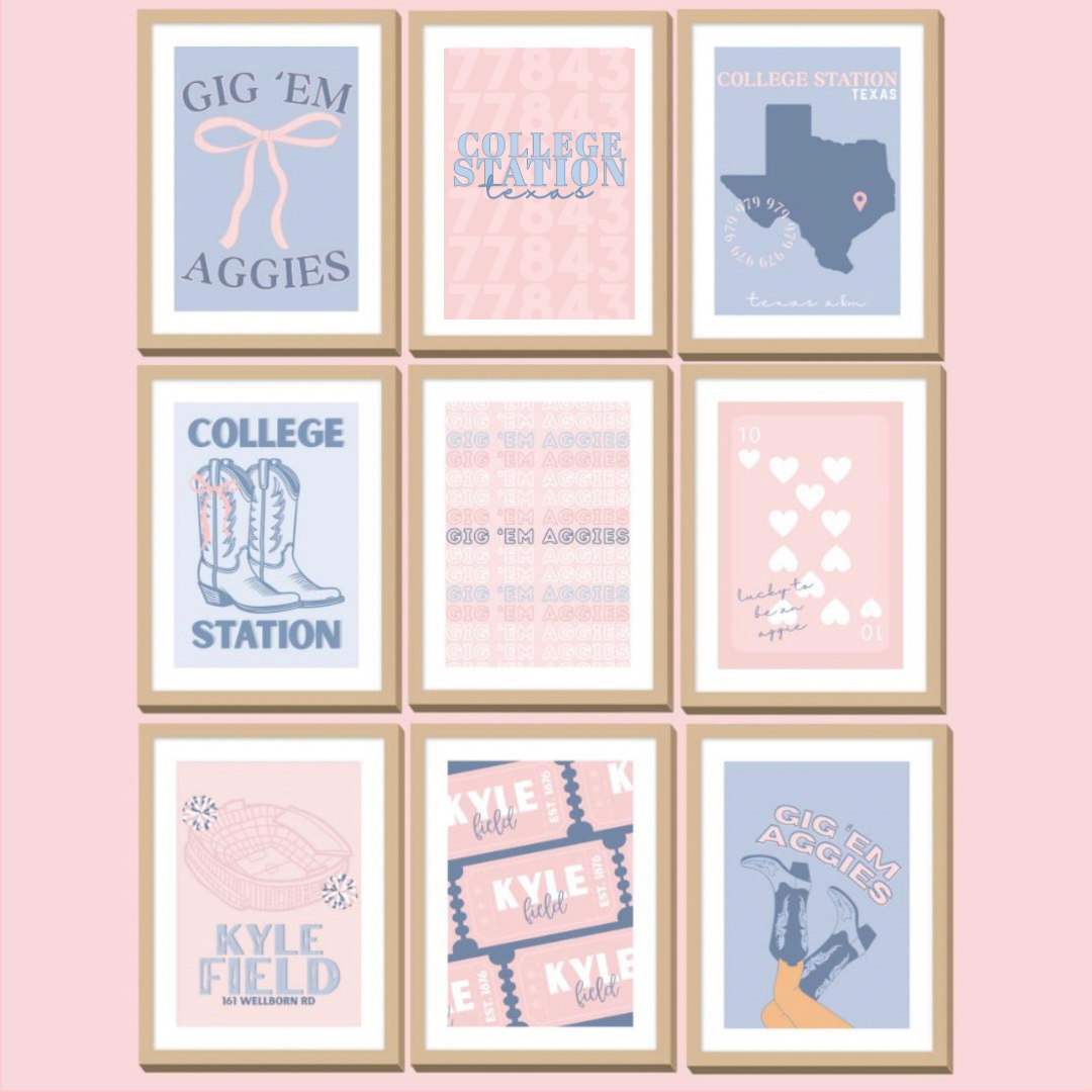 Set of 9 Custom College Digital Wall Prints - Texas A&M University, College Station