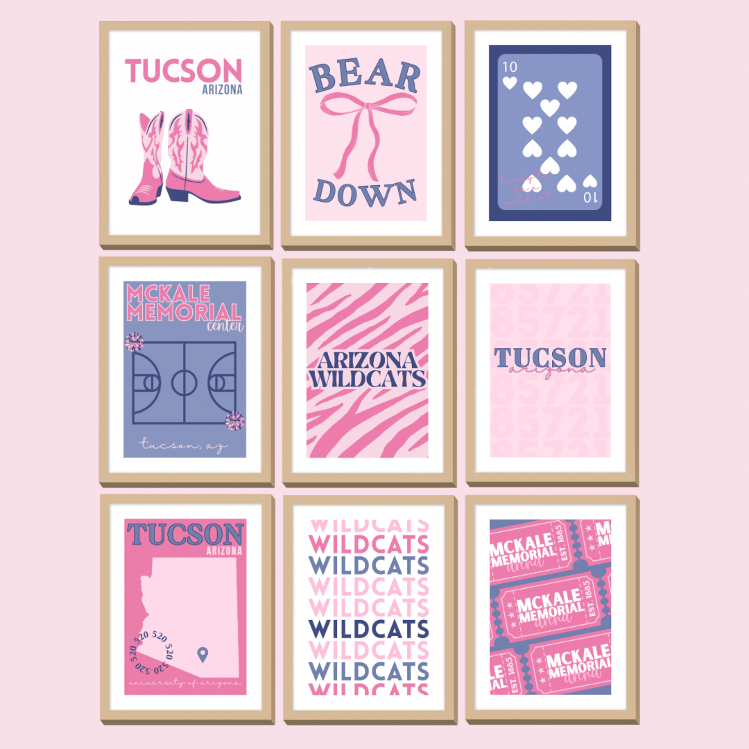 Set of 9 Custom College Digital Wall Prints - University of Arizona, Tucson