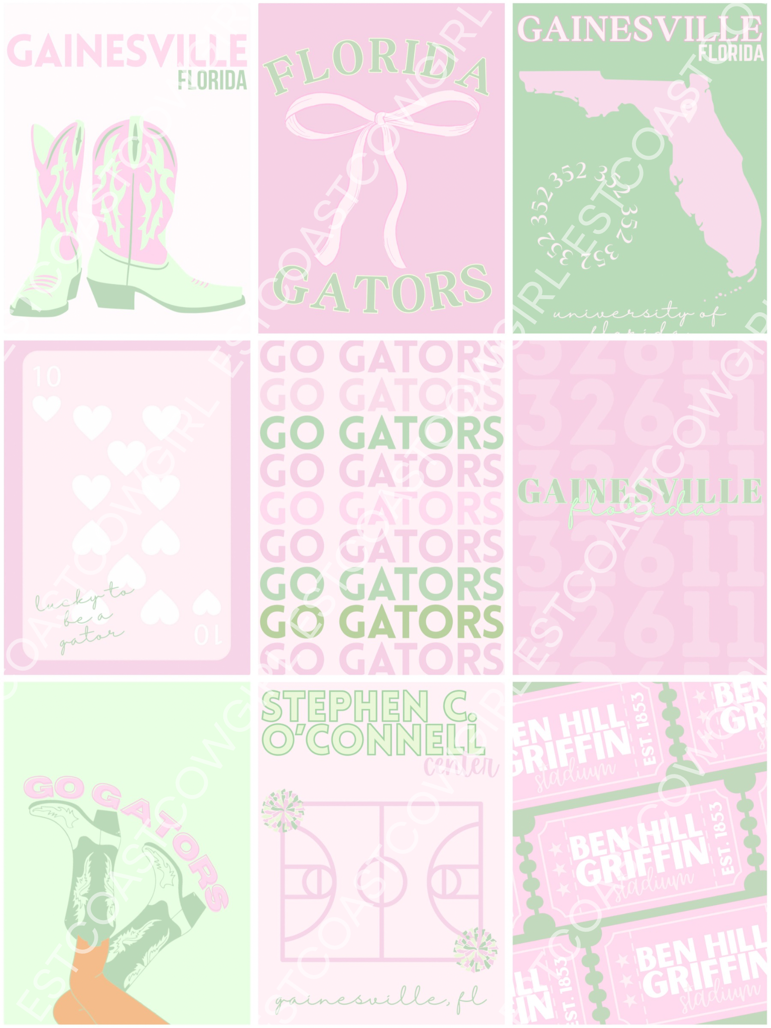 Set of 9 Custom College Digital Wall Prints - University of Florida, Gainesville