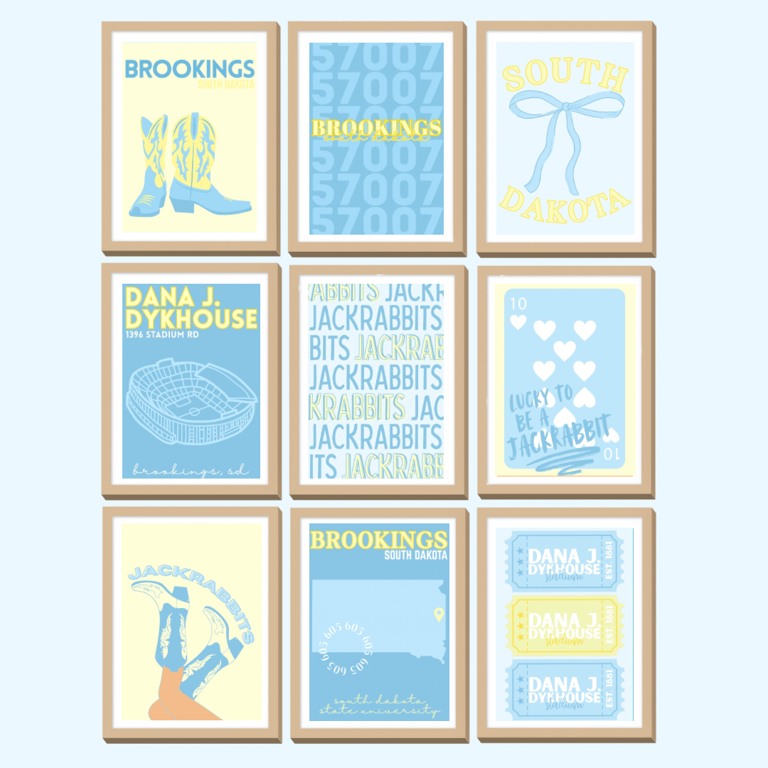 Set of 9 Custom College Digital Wall Prints - South Dakota State University (SDSU), Brookings