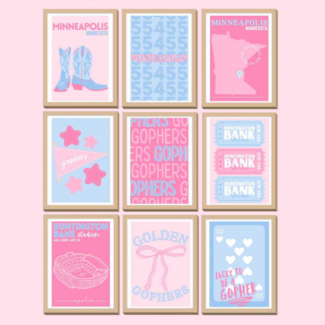 Set of 9 Custom College Digital Wall Prints - University of Minnesota, Minneapolis