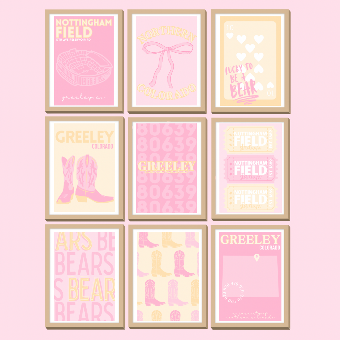 Set of 9 Custom College Digital Wall Prints - University of Northern Colorado (UNC), Greeley